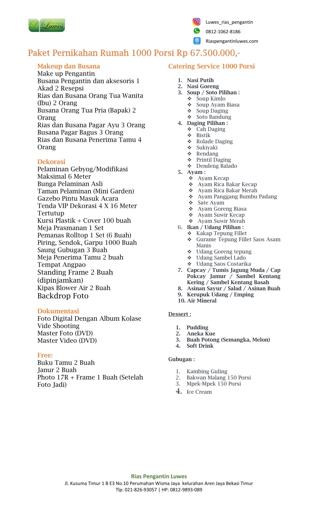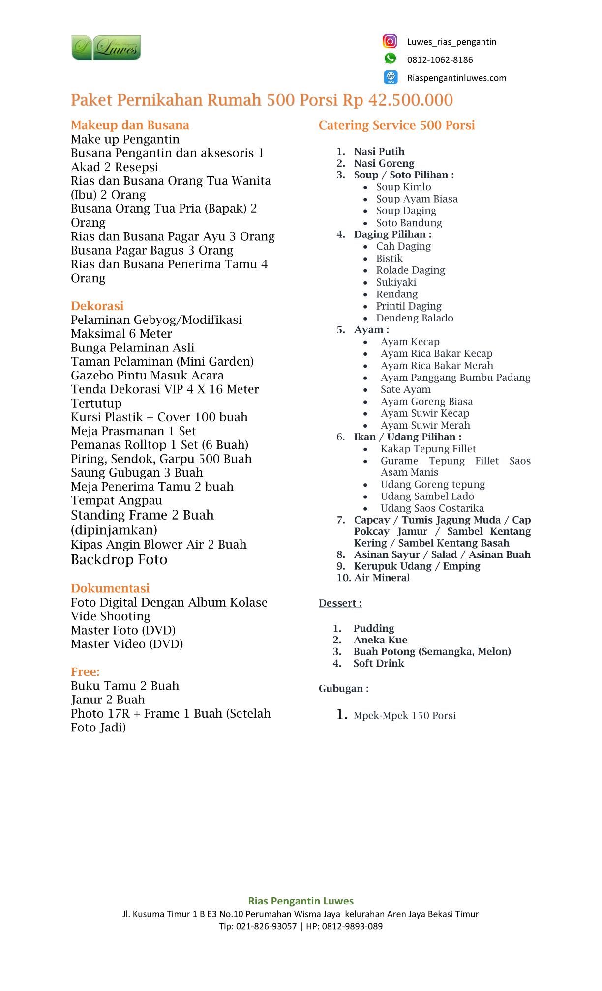 Paket Catering Pernikahan Rias Pengantin Luwes
