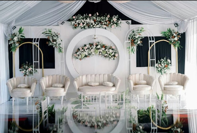 Pelaminan aula serbaguna bebas pilih 6-8 Meter + BungaSofa Pelaminan